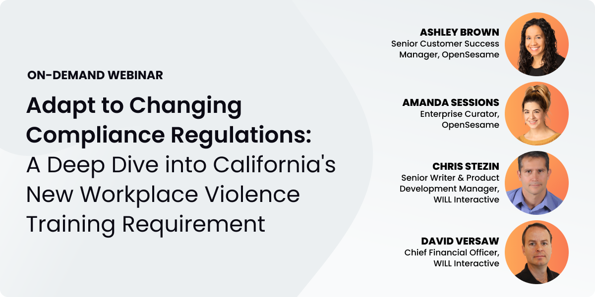 Leading experts from SAI360 and OpenSesame share best practices for designing and implementing a robust, yet flexible compliance training program. This event is tailored for compliance, HR, and L&D professionals seeking to enhance their organization's compliance programs through state-of-the-art ethics and compliance training that will ensure they meet the demands of 2025 and beyond.