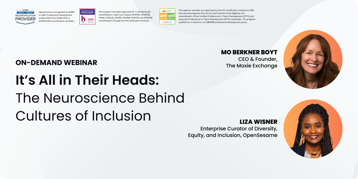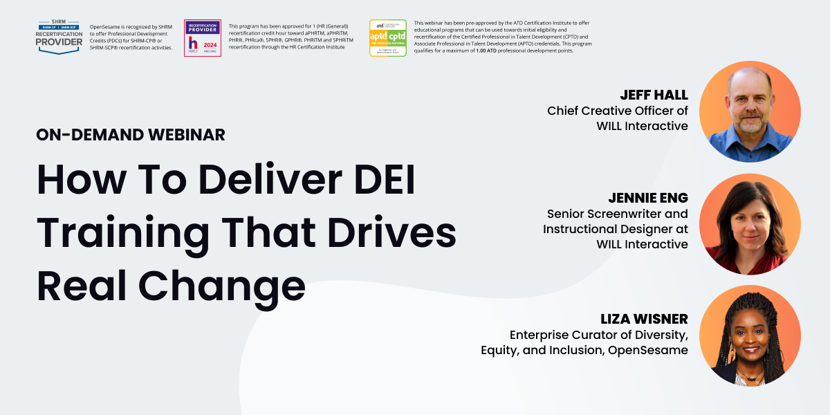 Workplace CultureGet up close and personal with Lisette Martinez, an award-winning DEI executive, as she shares her best practices and lessons learned. She will cover practical tips to effect true change for the betterment of health care employees and patients, and also introduce her new eLearning course, DEI Leap: Turn Intention into Action, to the OpenSesame community.